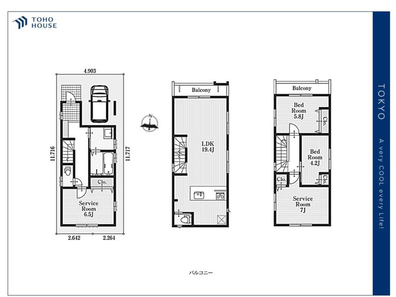 第二種高度地区 準防火地域 建物面積に車庫面積6.83㎡含む
